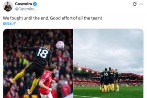 体育资讯11月2日讯 2025-26赛季英超联赛第10轮,曼联2-2战平诺丁汉森林,卡塞米罗本场头球破门。赛后,卡塞米罗在社交媒体晒出自己头球以及与队友庆祝的照片,并配文写道:“我们战斗到了最后,全队都付出了很棒的努力!”